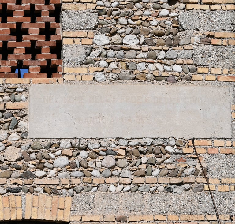 Una di esse si legge ancora a fatica e ricorda che il rispetto del nome di Dio è un valore civile oltre che spirituale: Nel nome della fede e della civiltà/bando alla bestemmia.